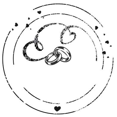 Tampon mariage, 2 alliances & envol de petits cœurs