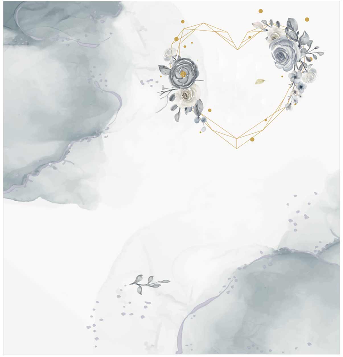 • Faire part mariage  mariage composition de fleurs bleutées cœur en fleurs saphir