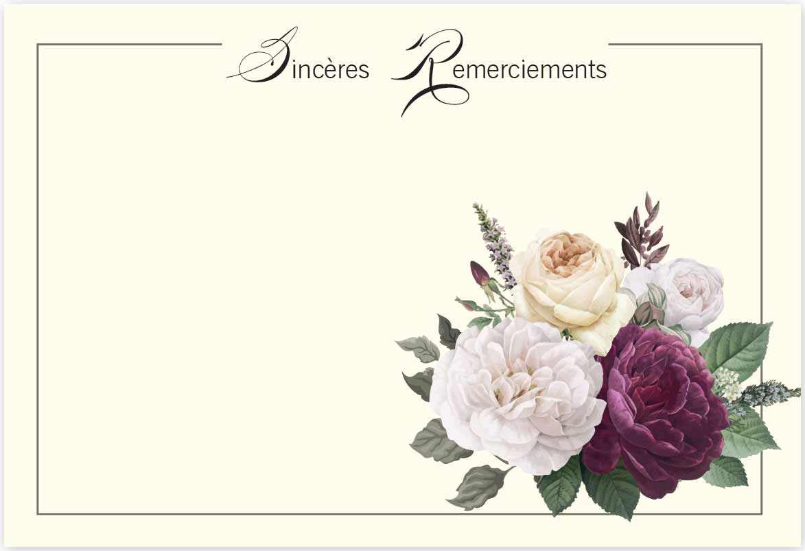 • carte décès personnalise sincères  remerciements bouquet de fleurs