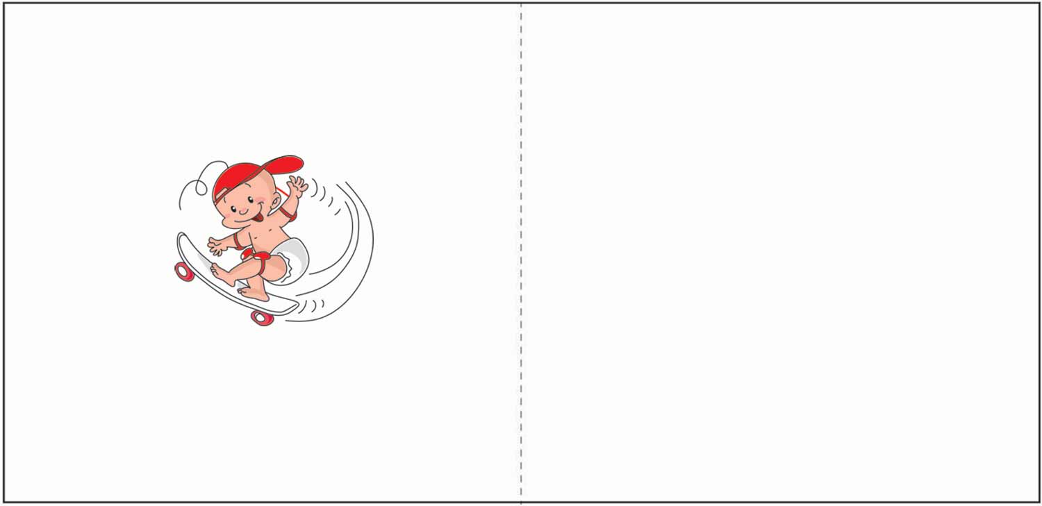 Faire part de naissance illustré bébé SKATEUR en mouvement sur la planche