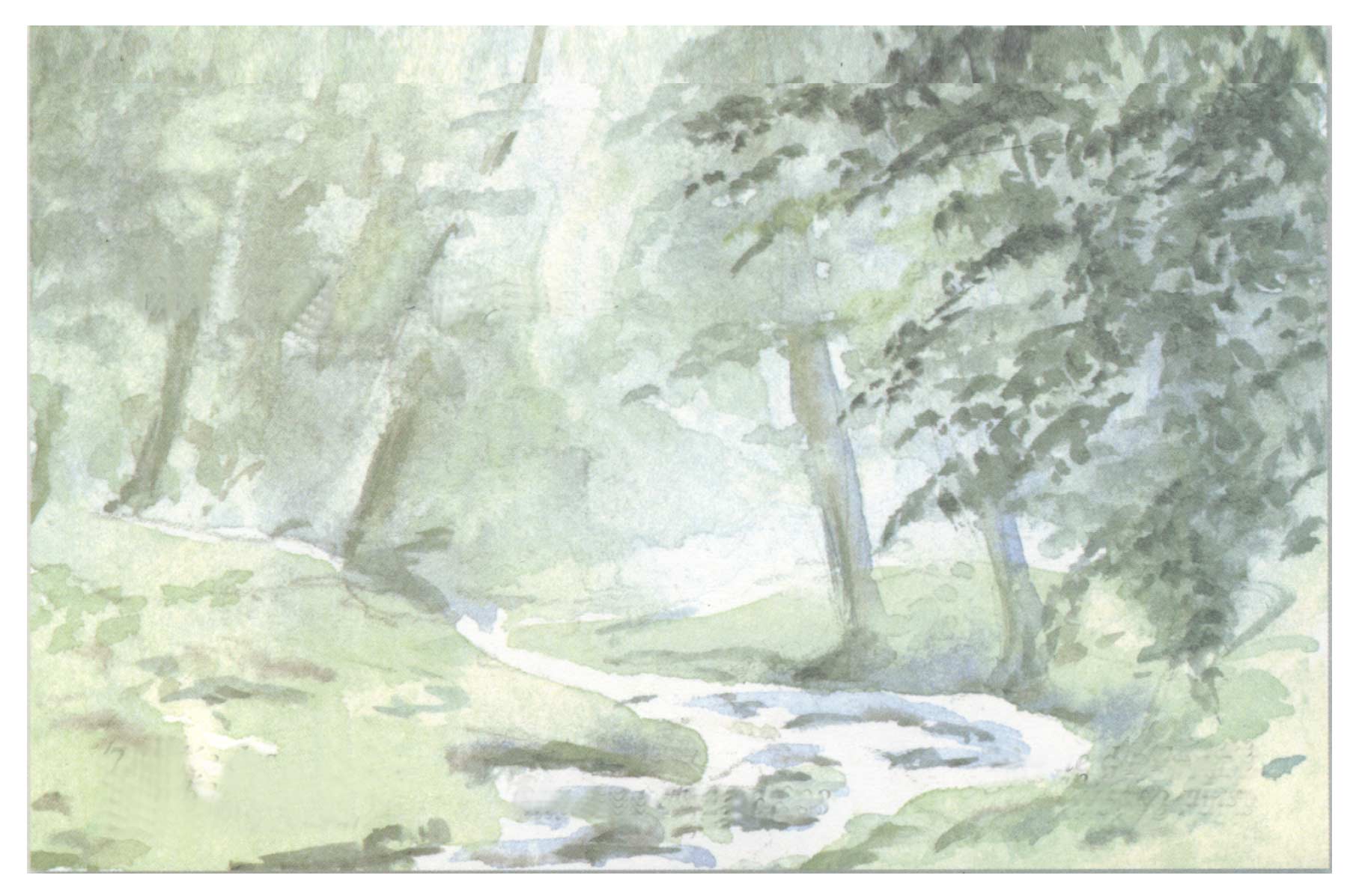sur un fond pastel, carte de condoléances de sous bois, ou se dessine un chemin de traversée en douceur carte de deuil Imprimé de qualité sobre raffiné. un Faire part décès entièrement personnalisé à vos idée,