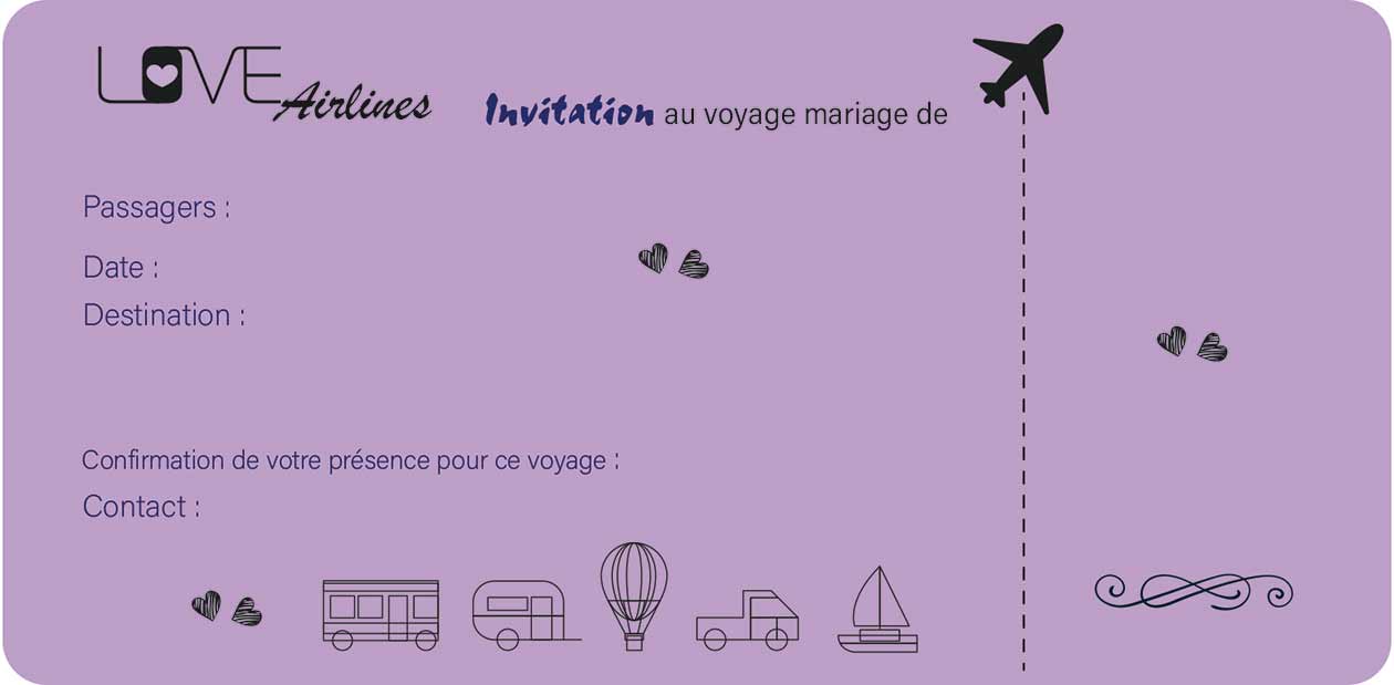 BILLET TRAVELS FAIRE PART MARIAGE