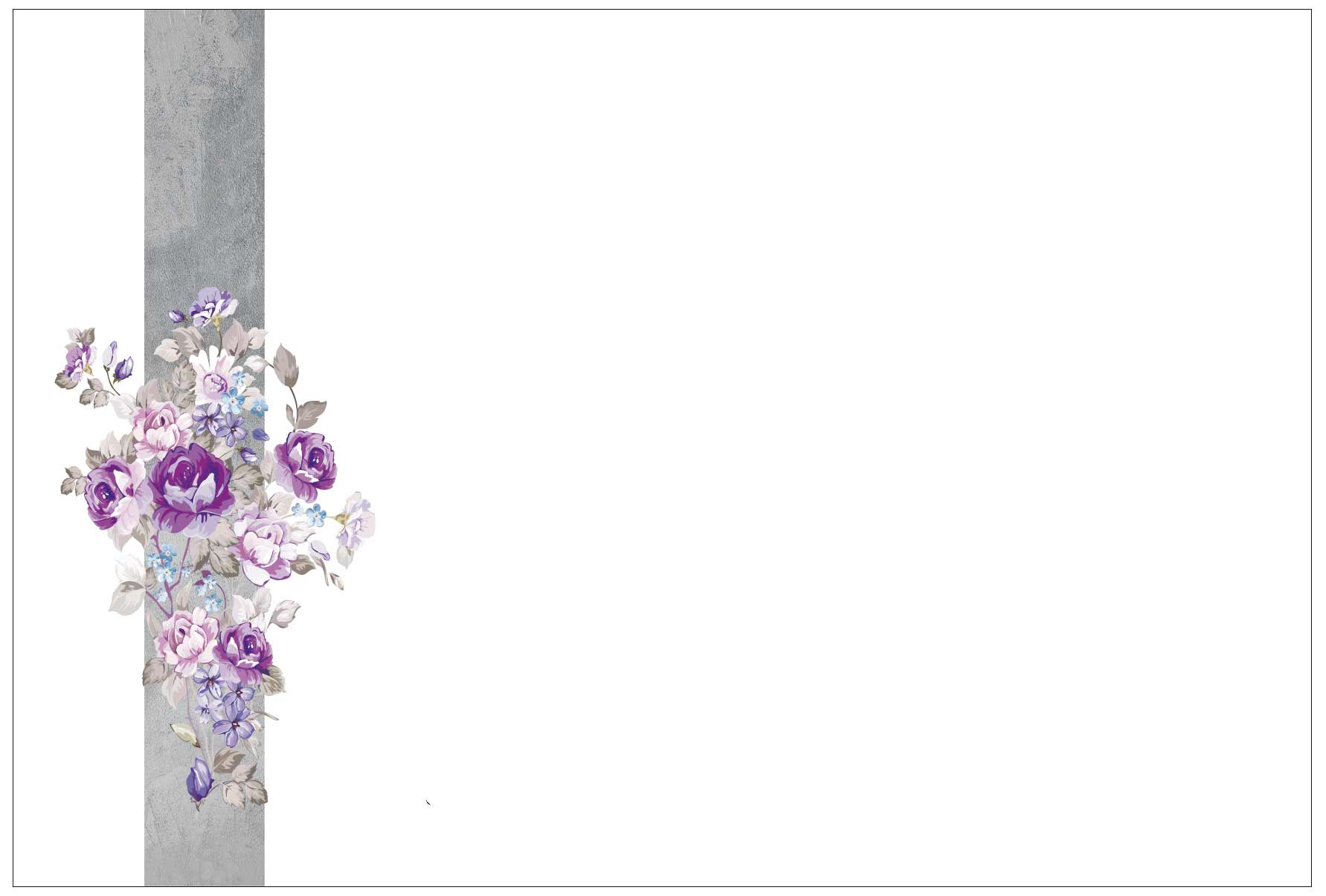 • carte remerciements décès,  bouquet de  violettes, bandeau gris marbré